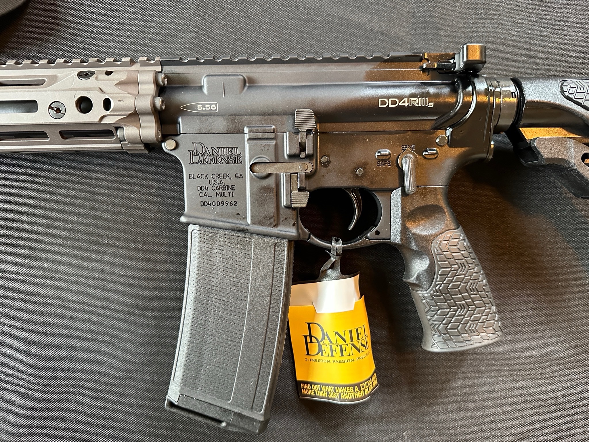 Black Daniel Defense DD4 RIIIS DI 5.56MM With Ambi Lower 11.5″ 30+1 RIS III RAIL / DD FURNITURE Short Barrel Rifle (SBR) NFA SKU: 02-191-30095-047